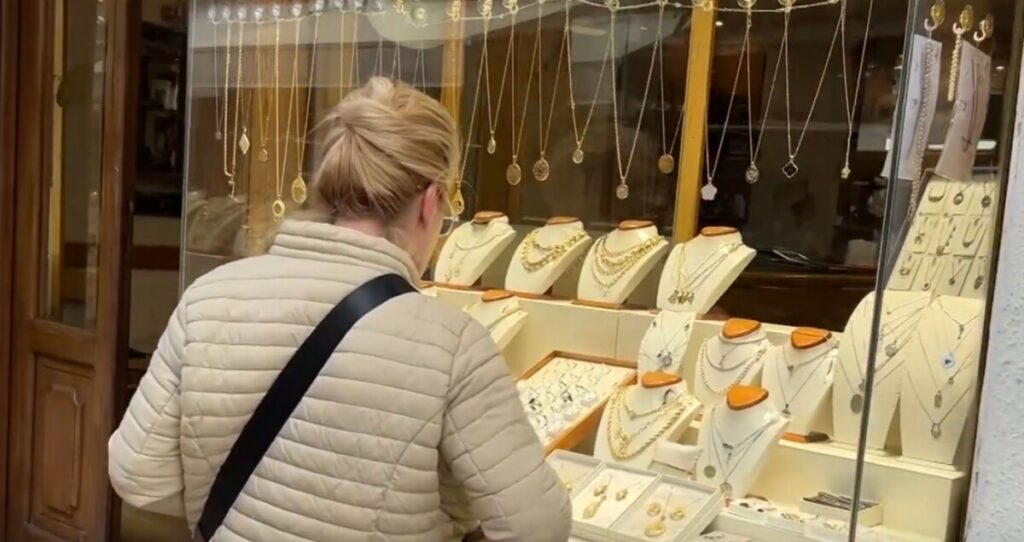 Вака изгледаат златарските улици во Старата чаршија во Скопје. Граѓаните разгледуваат излози, но двапати размислуваат пред да купат, бидејќи цените достигнаа рекордни нивоа.