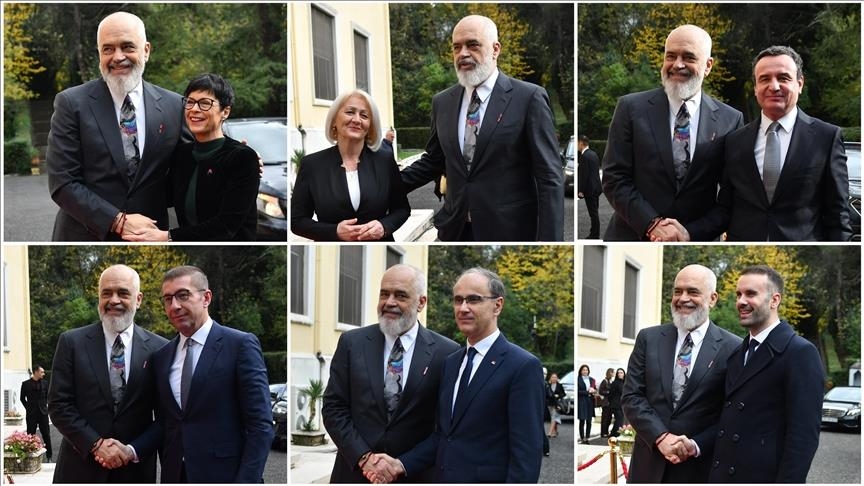 Премиерот на Албанија, Еди Рама, во Палатата на бригадите во Тирана ги пречека лидерите и другите официјални претствници што учествуваат на самитот – премиерот на Северна Македонија, Христијан Мицкоски, српскиот премиер Ѓуро Мацут, црногорскиот премиер Милојко Спајиќ, вршителот на должноста премиер на Косово, Албин Курти, претседателот на Советот на министри на БиХ, Борјана Кришто и комесарката за проширување на ЕУ, Марта Кос.