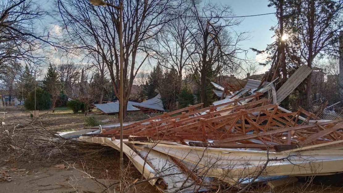 Преку Единствениот број за итни повици 112 е примена пријава дека поради силен ветер летнала лимената конструкција од кровот на СОУ „Јосиф Јосифовски“ во Гевгелија.